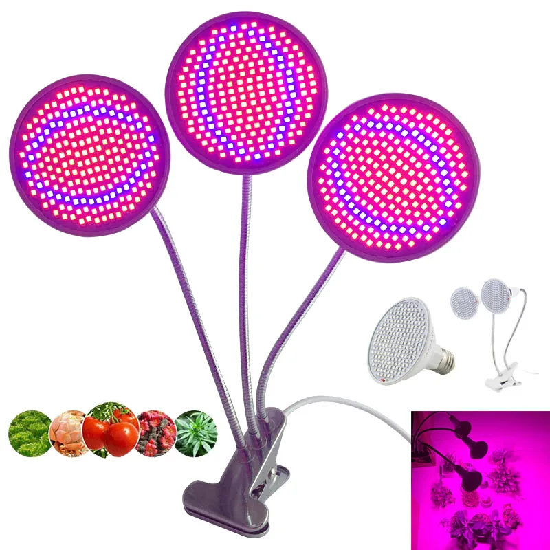€ 6,35 25%OFF | 3-head 200 LED Plant Grow Light Bulb for Lamp Room Dual Flower tent Indoor Clip hydro growbox Veg E27 red blue greenhouse
